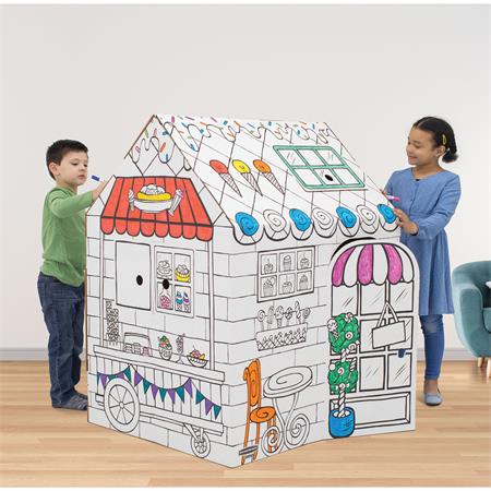 Az XL méretű játszóház ösztönzi a célirányos szerepjátékot, a nyelvi fejlődést és a mesemondást, miközben a gyerekek kifestik, díszítik és személyre szabják a saját terüket.