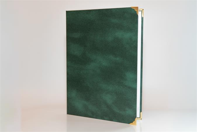 Oklevéltartó, A4, exkluzív, műbőr, 4 fém sarokkal, zöld