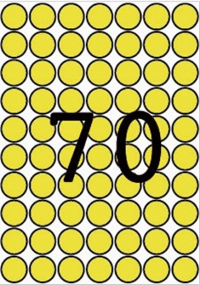 Etikett, 19 mm kör, színes, A5 hordozón, APLI, sárga, 560 etikett/csomag